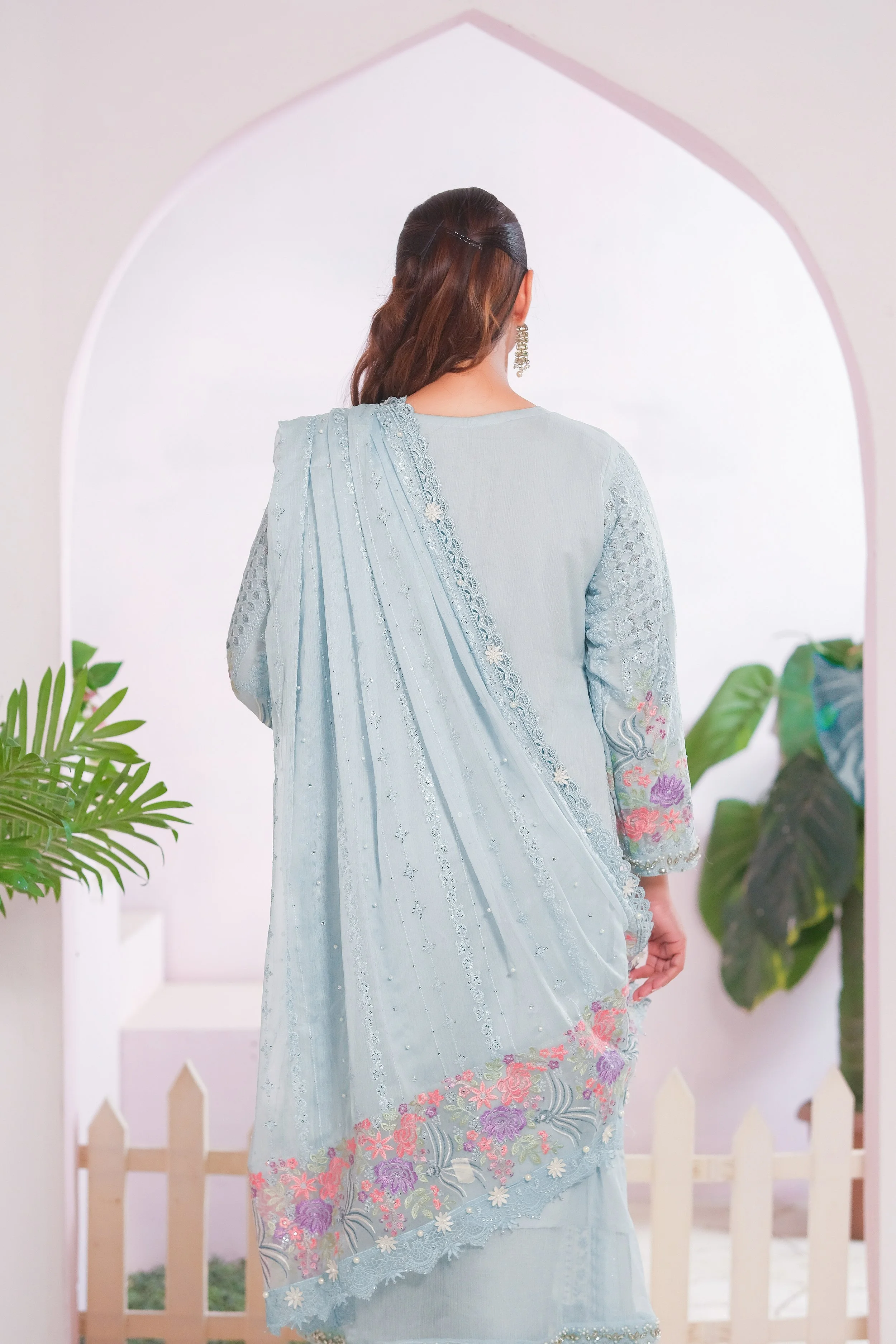 Pakistani Embroidered Chiffon Suits Unstitched 3 Piece ZLC 08 Dusty Teal - Luxury Formal Collection | Pakistani Designers Punjabi Suit Salwar Kameez